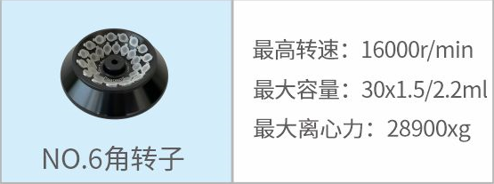 6 | 角轉(zhuǎn)子 | 16000r/min | 30×1.5ml/2.2ml | 28900xg |