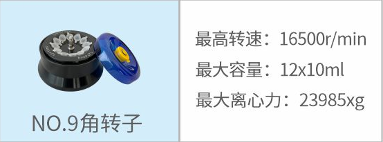 9 | 角轉(zhuǎn)子 | 16500r/min | 12×10ml | 23985xg |