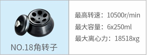 18 | 角轉(zhuǎn)子 | 10500r/min | 6×250ml | 18518xg |