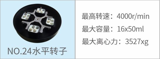 24 | 水平轉(zhuǎn)子 | 4000r/min | 16×50ml | 3527xg |