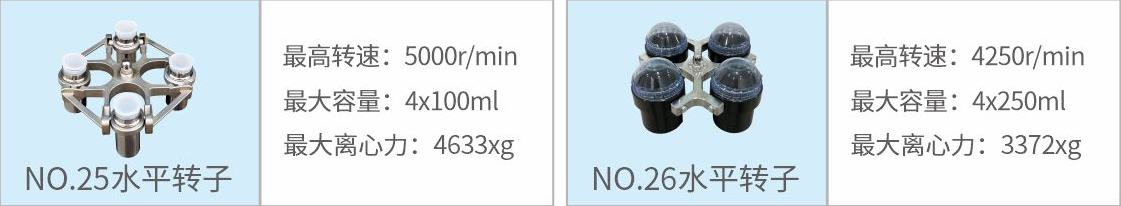 25 | 水平轉(zhuǎn)子 | 5000r/min | 4×100ml | 4633xg |
