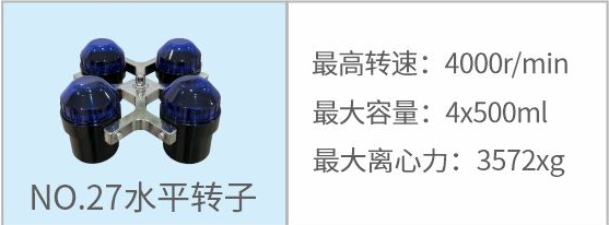 27 | 水平轉(zhuǎn)子 | 4000r/min | 4×500ml | 3572xg |