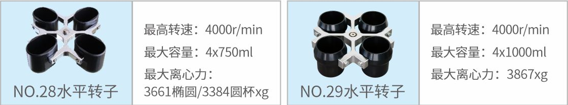 28 | 水平轉(zhuǎn)子 | 4000r/min | 4×750ml | 3661橢圓 3384xg圓杯 |
